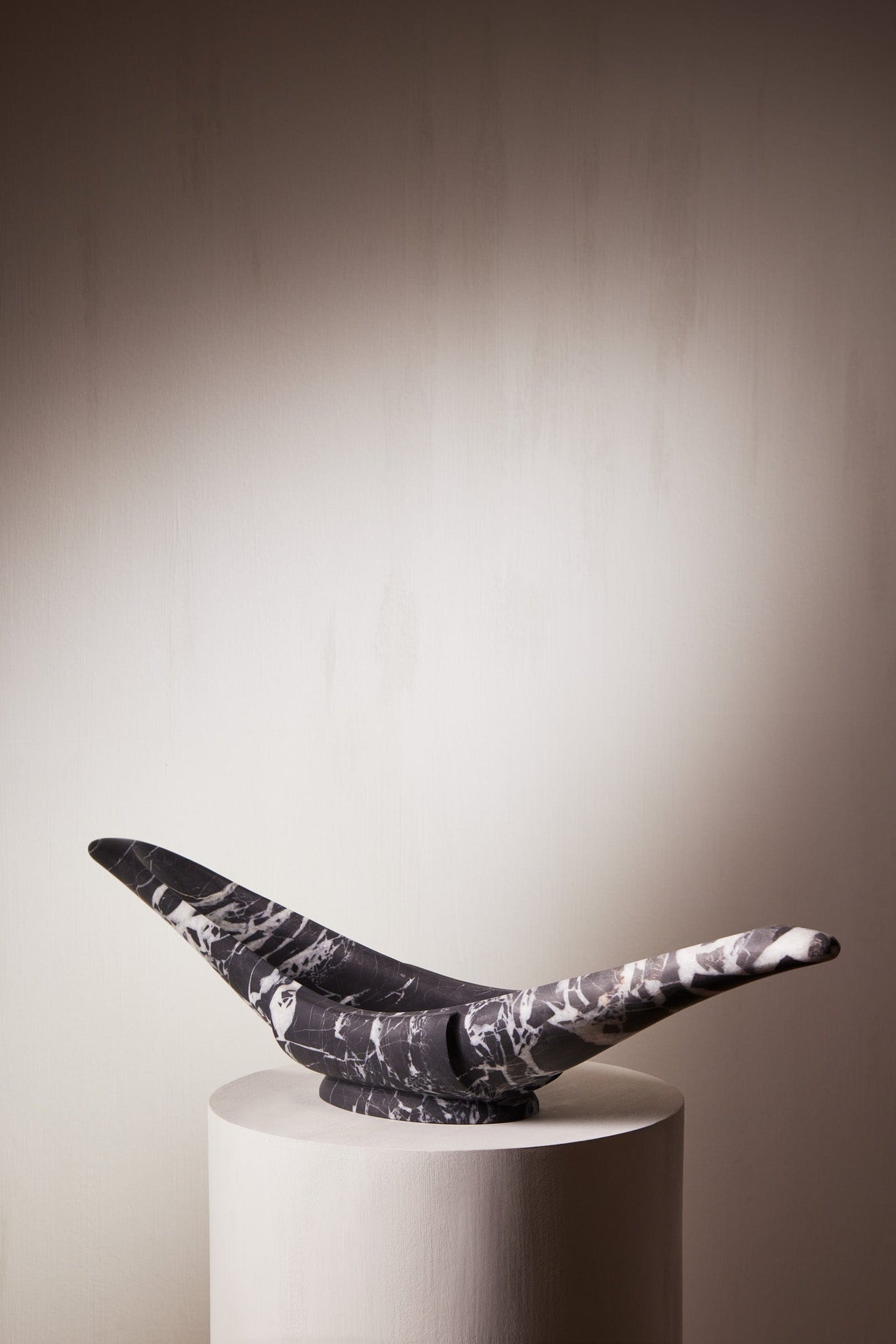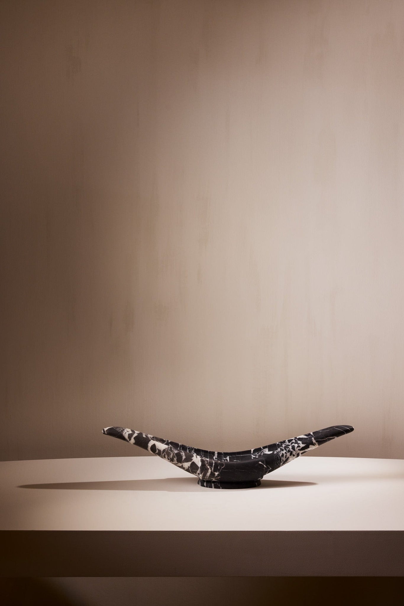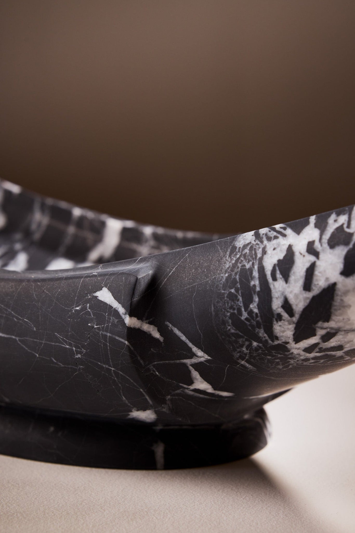 Matthew Fisher M.FISHER Stone Carved Marble Bowl Tray Black White Designer Decorative Home decor