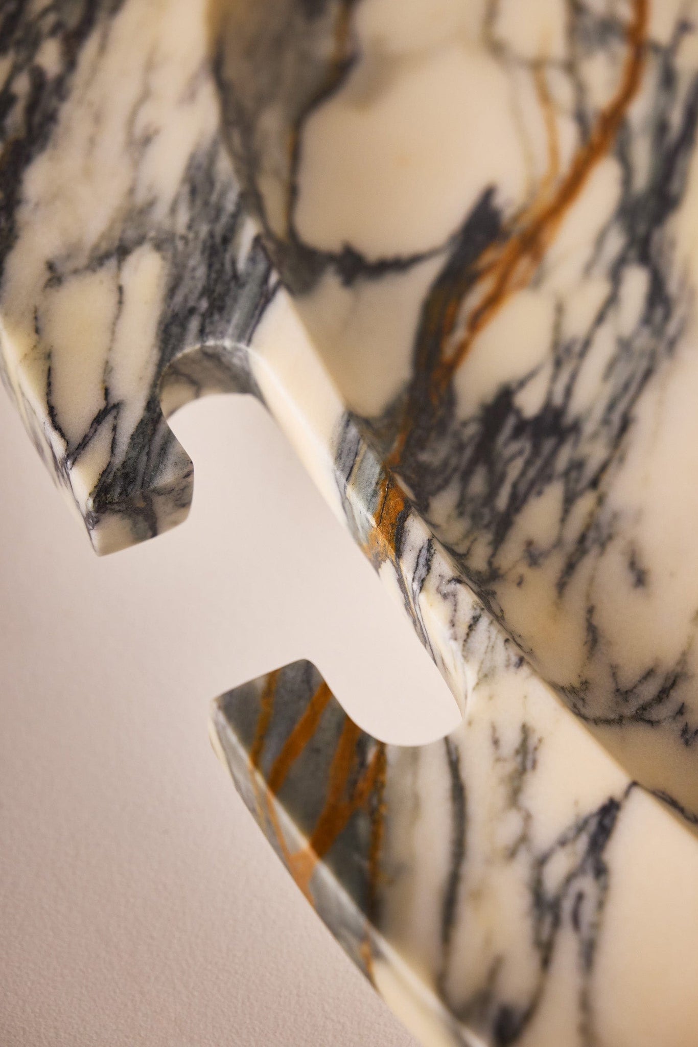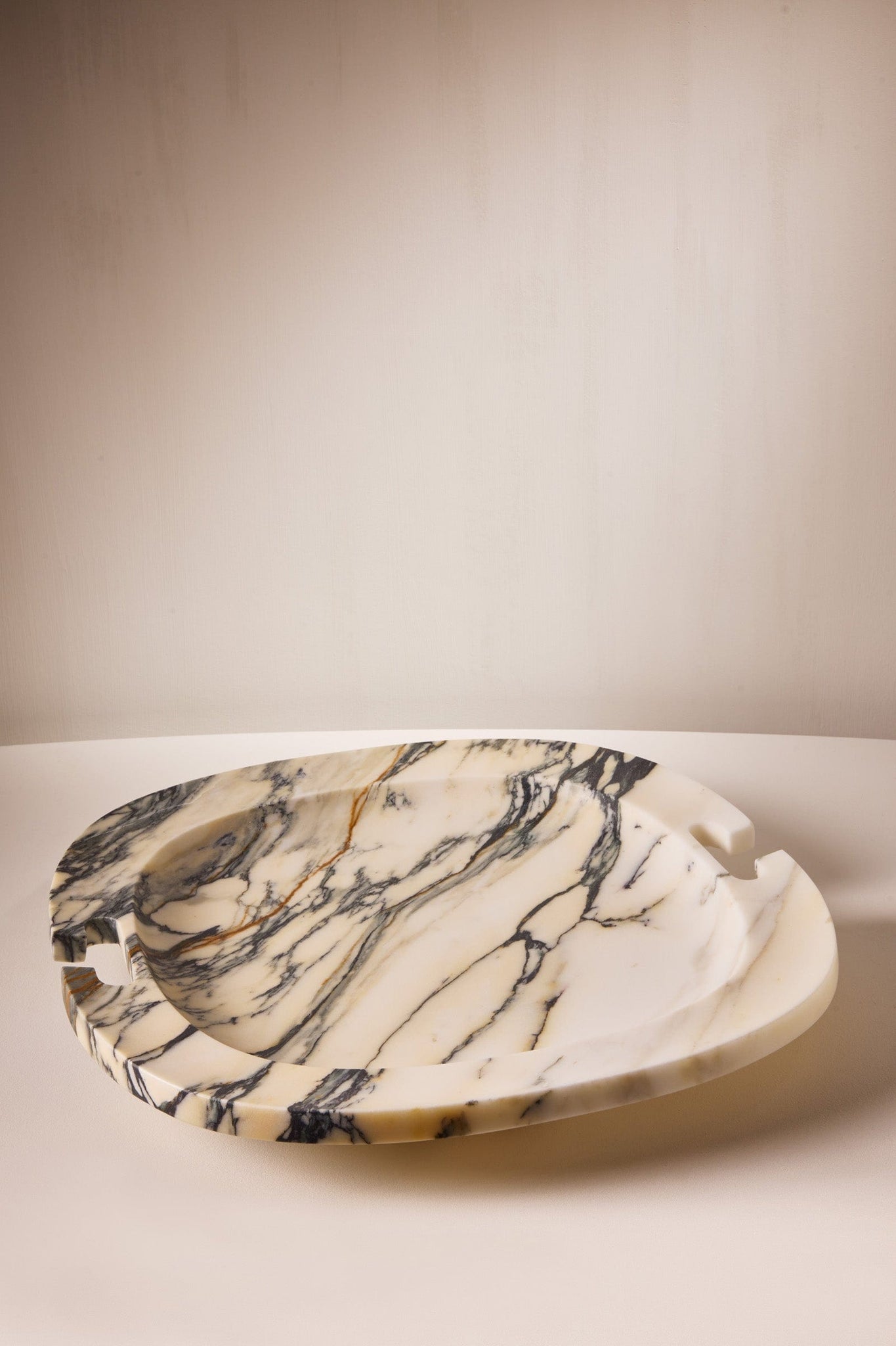 Drawing inspiration from a Rhodian terracotta plate, this piece reimagines tradition by subtracting handle-like forms from the vessel. The negative space creates a strikingly modern effect, turning a simple shallow dish into a dynamic fusion of past and present.