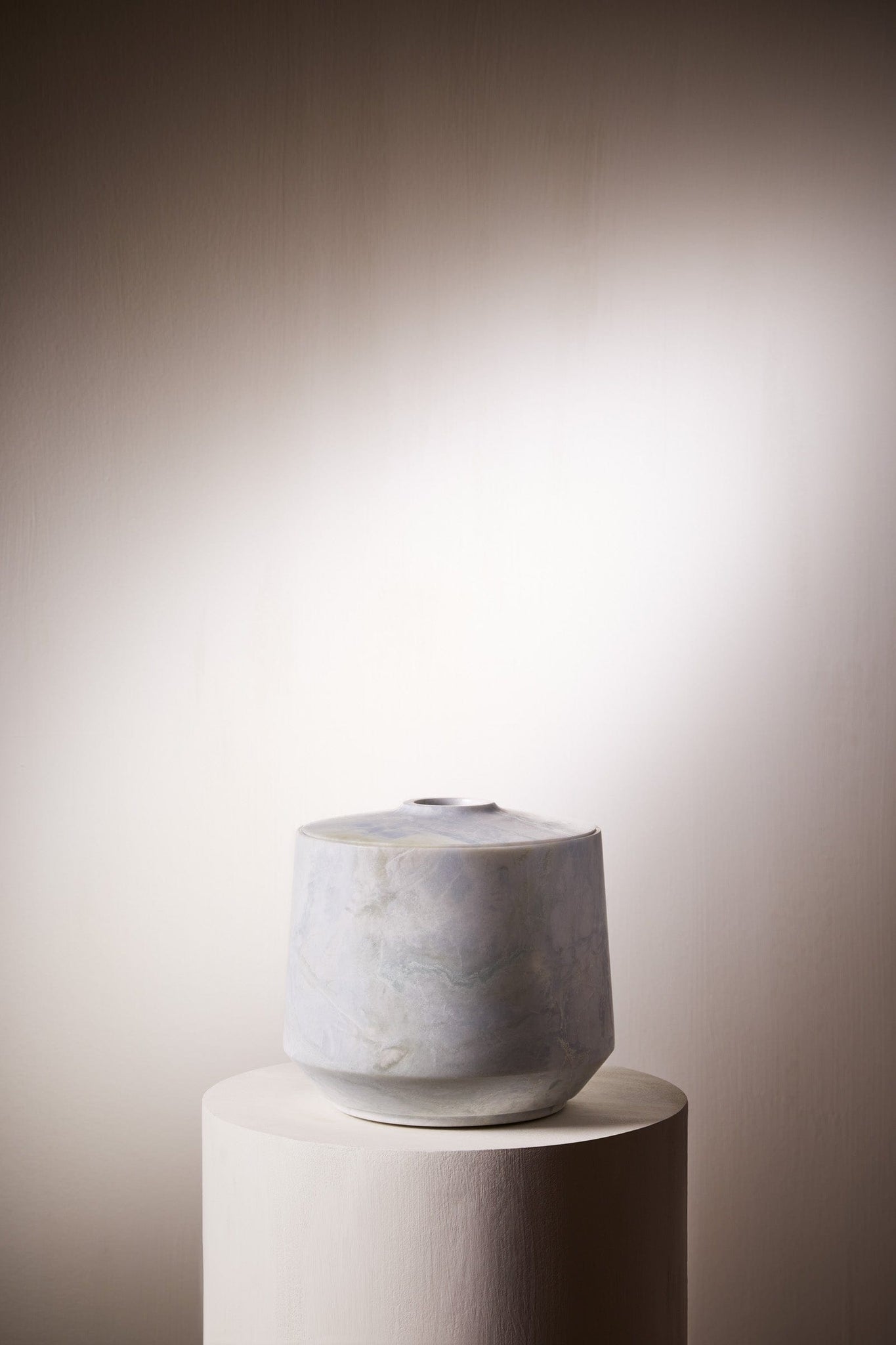 Matthew Fisher M.FISHER Stone Carved Marble Large Blue Vase Container Sculpture Decorative