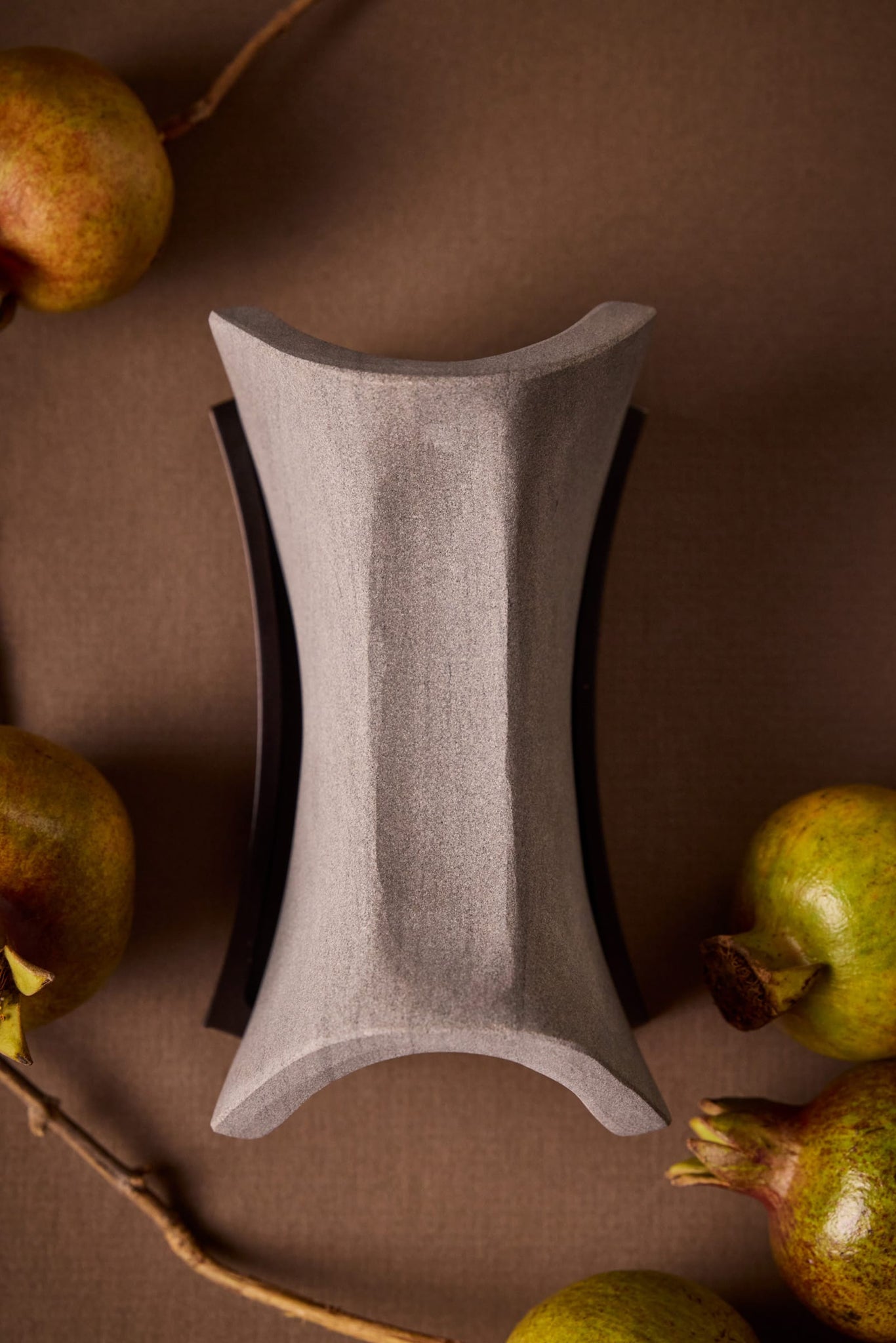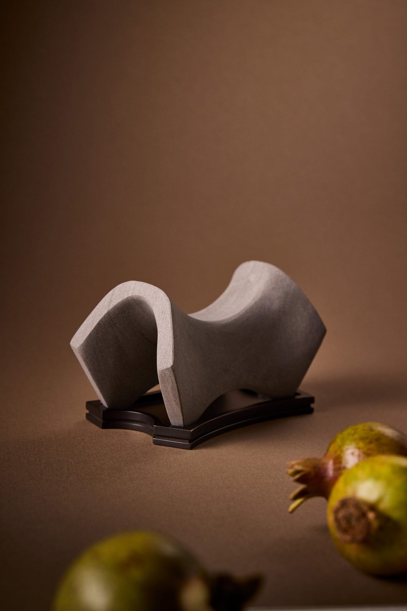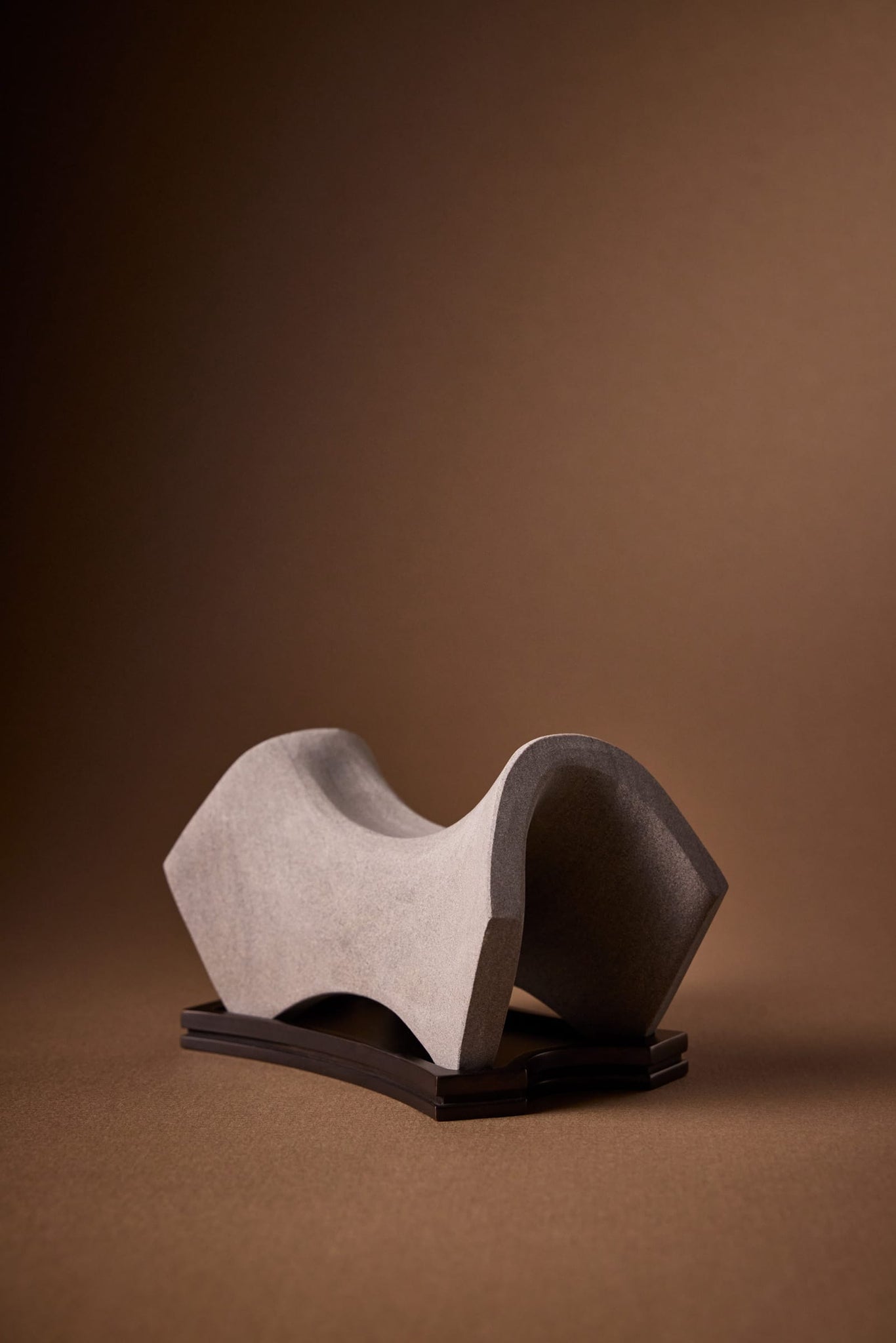 Each Presentation Set includes a hand-carved silver sandstone diffuser sculpture, a cast bronze plate, and a 30ml Extrait de Parfum, presented in a branded box. The oil is drawn across the carved stone arc of the sculpture, igniting the air and transforming the ordinary into ceremony. From a limited first production run of 107 pieces.